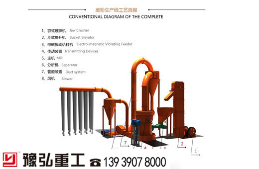 豫弘重工不僅能為廣大用戶提供選擇性廣、配套合理、質(zhì)量可靠、性價比高的工業(yè)磨粉機(jī)生產(chǎn)線,而且還能提供磨粉作業(yè)的整體設(shè)計和施工方案,以及磨粉領(lǐng)域的交鑰匙工程。磨粉生產(chǎn)線通常由顎式破碎機(jī)、斗式提升機(jī)、電磁振動給料機(jī)、磨粉機(jī)主機(jī)、分析機(jī)(選粉機(jī))、輔機(jī)、風(fēng)機(jī)、集中電控等設(shè)備組成,根據(jù)用戶的不同需要磨粉生產(chǎn)線磨機(jī)可選擇配置高壓懸輥磨粉機(jī)、梯形磨粉機(jī)、雷蒙磨粉機(jī)、三環(huán)中速微粉磨粉機(jī)等。